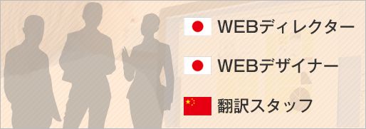 日本人WEBディレクターと日本人WEBデザイナーに日本語に精通した中国人翻訳スタッフを加えたチーム体制を確立。